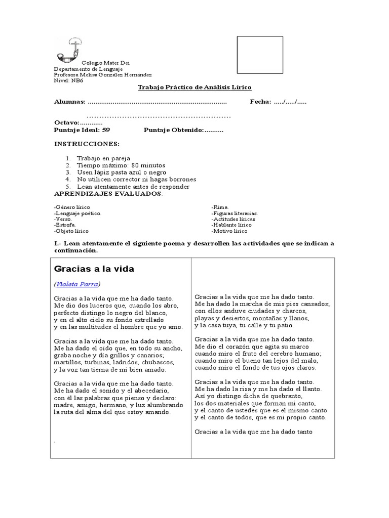 for "Análisis Literario Del Poema La Canción : Pdf Gracias A La Violeta Parra Un Analisis De La Cancion Gracias A La Vida"